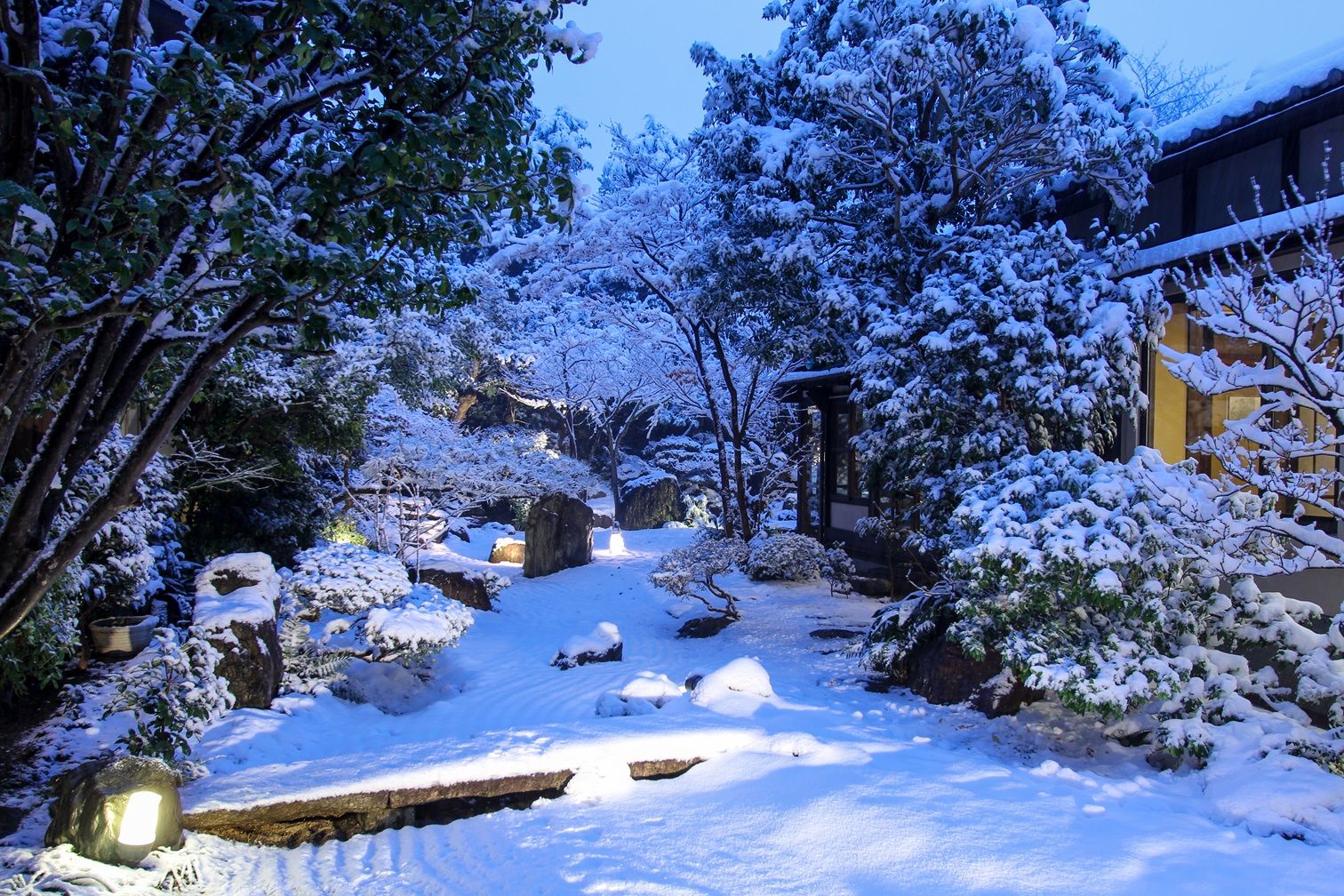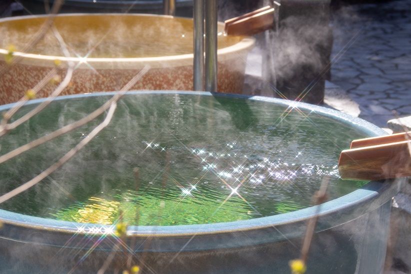 うぐいす色の源泉かけ流し温泉と四季の苔庭を臨む和室でのひととき