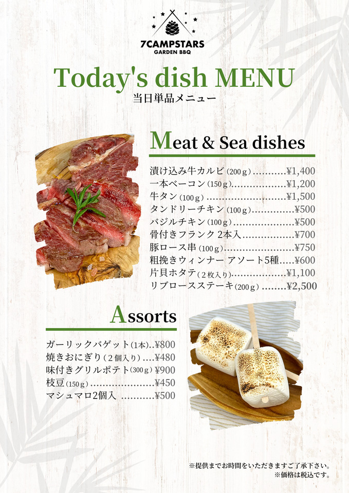 ▶ The BBQ will operate in light rain, but may be canceled in severe weather such as typhoons or thunderstorms. If canceled, we will notify you by email by the day before.
