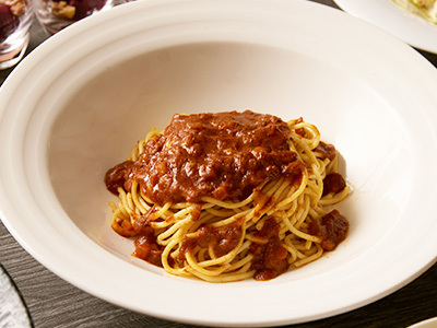 揚げ茄子とモッツァレラチーズのトマトバジルパスタ