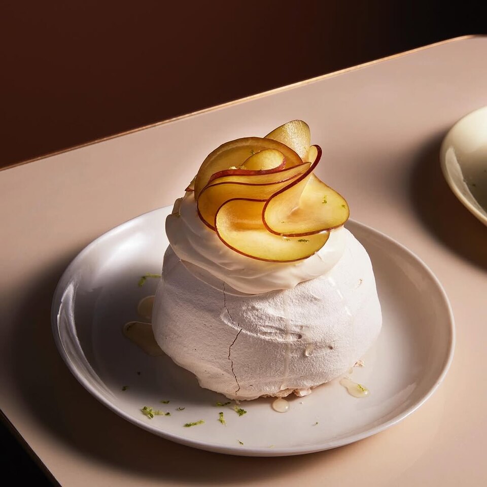 brown sugar pavlova, fresh persimmon, honey and lime, yoghurt cream