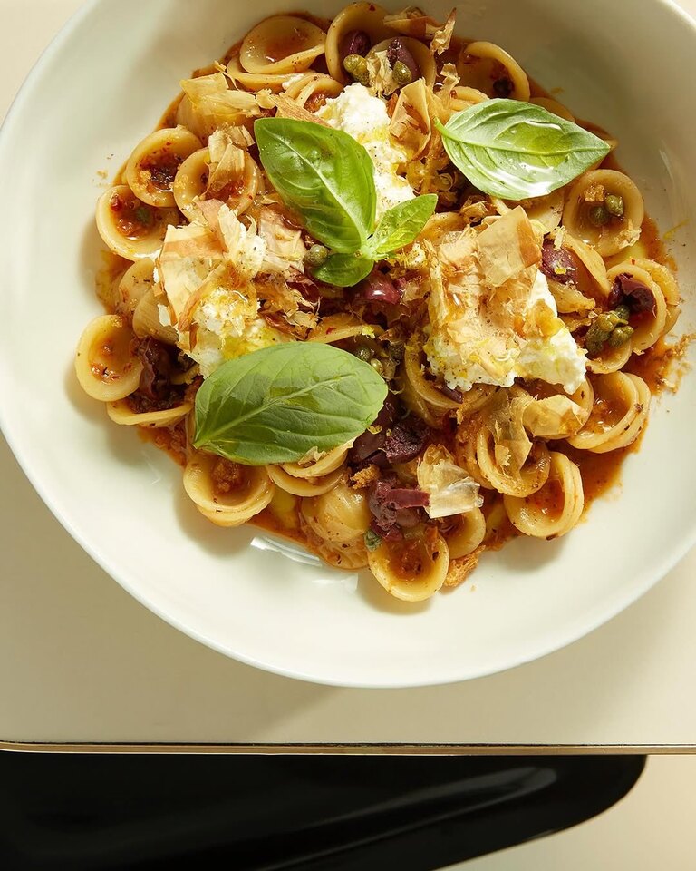 オレキエッテ - 自家製XO醤、リコッタ、ケッパー、 カラマタオリーブ