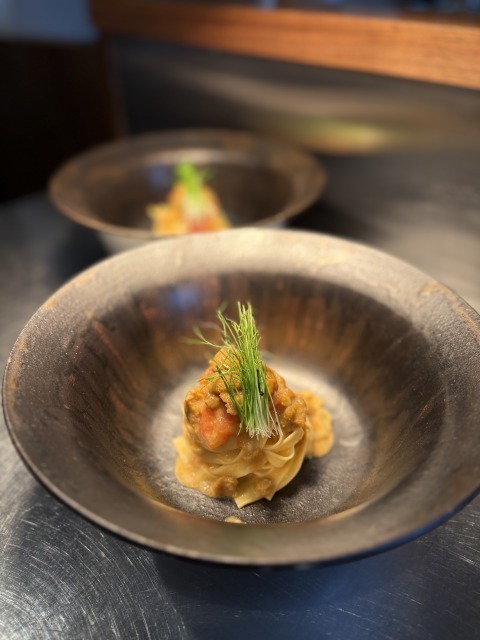 温かい前菜、自家製パスタ2皿、旬の魚介、肉料理