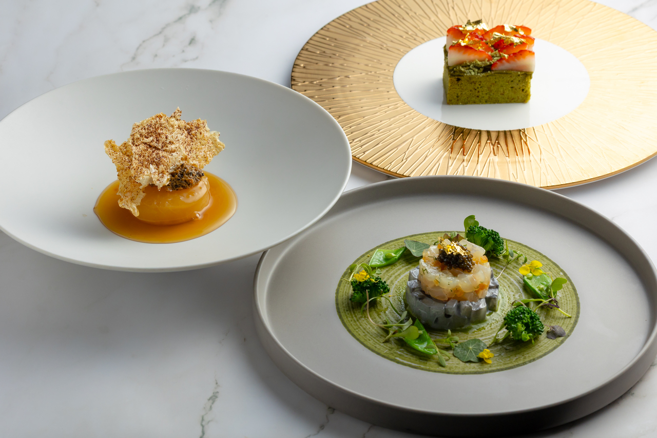 This course was born from the chef's imagination of "What kind of food would please the two brothers if they were to visit Tokugawa Garden in modern times?" Each dish incorporates historical episodes, such as "Moriguchi-zuke" (pickled vegetables) said to have been named by Hideyoshi, "sea bream" which he loved, and a dessert inspired by the "golden tea room."