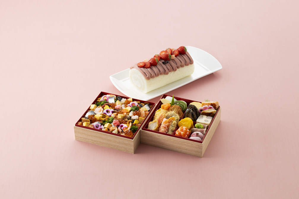 【通常】 ひなまつりお祝いセット 「花」 (ひなまつり二段重+ひなまつりロールケーキ) 【カード決済用】