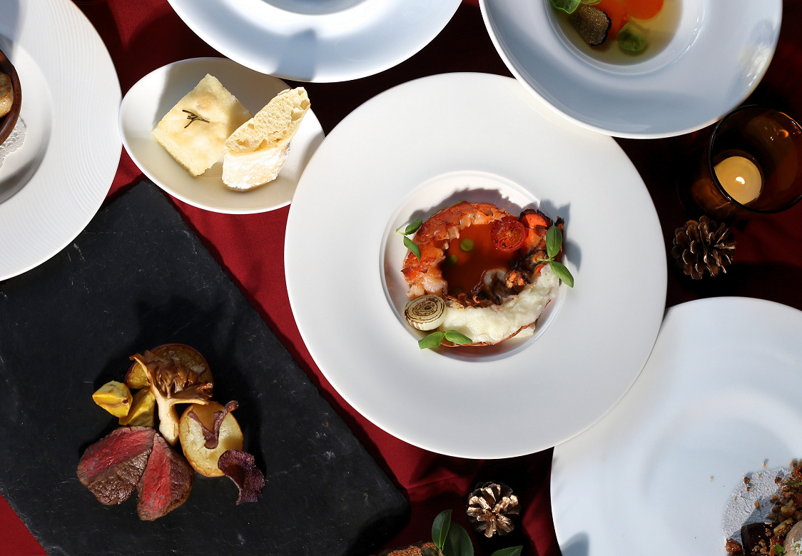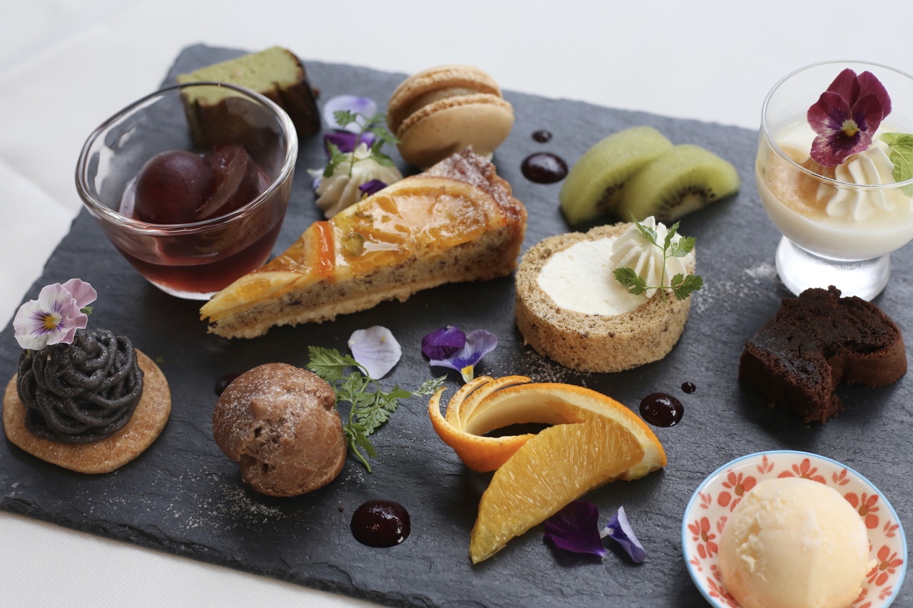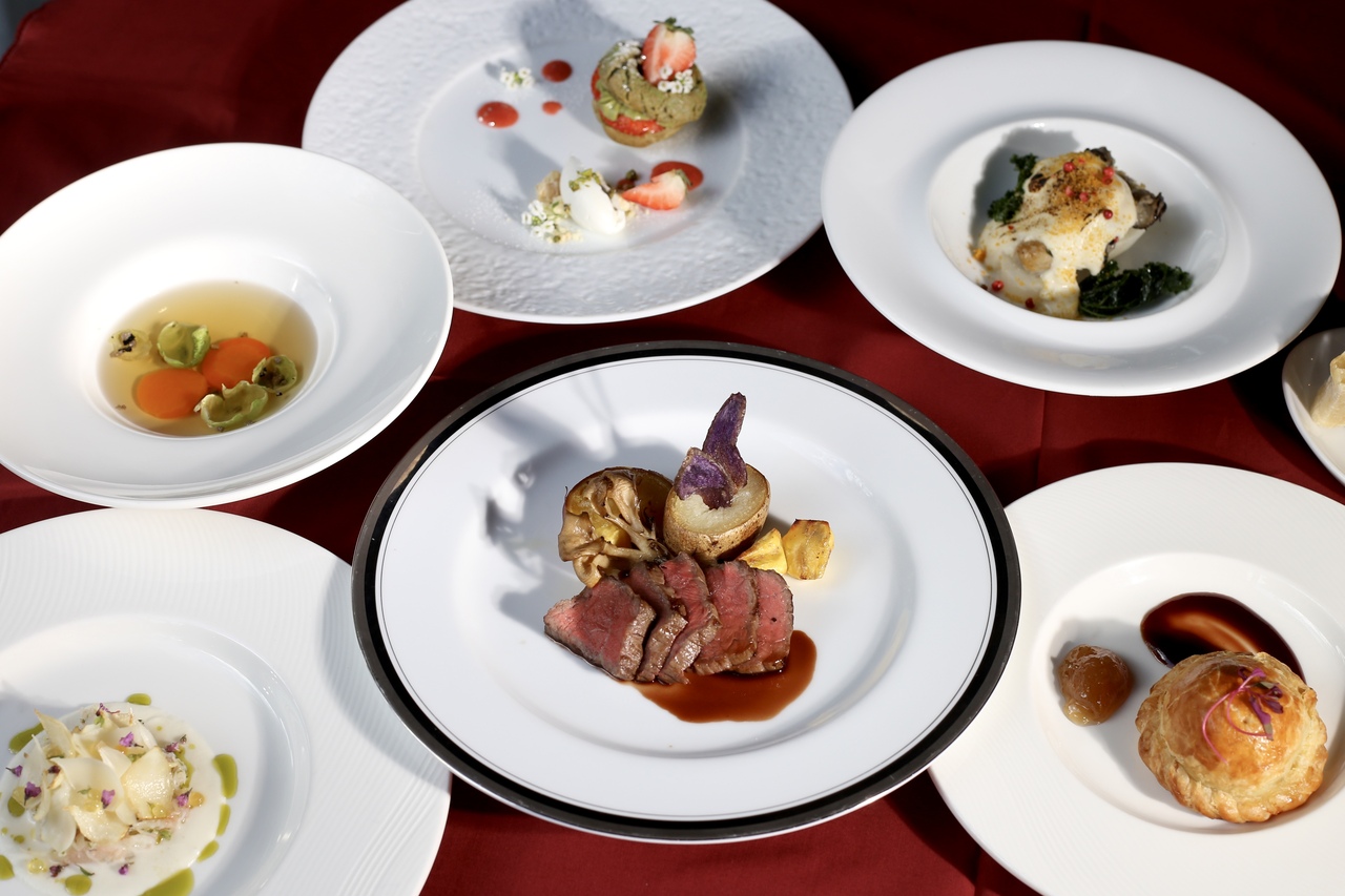 Mackerel saltimbocca, taro croquette, Yamagata pork loin jumbo no, honey mustard sauce, sweet potato and pear soup, BORA kadaif wrapped, tonnato sauce, domestic beef fillet roti, seasonal warm vegetables, mushrooms and soft-shelled turtle, soup stock, purple sweet potato and apple Brûlée cheese-flavored pie stick after-meal drink *The photo is for illustrative purposes only. *Contents may vary depending on the day.