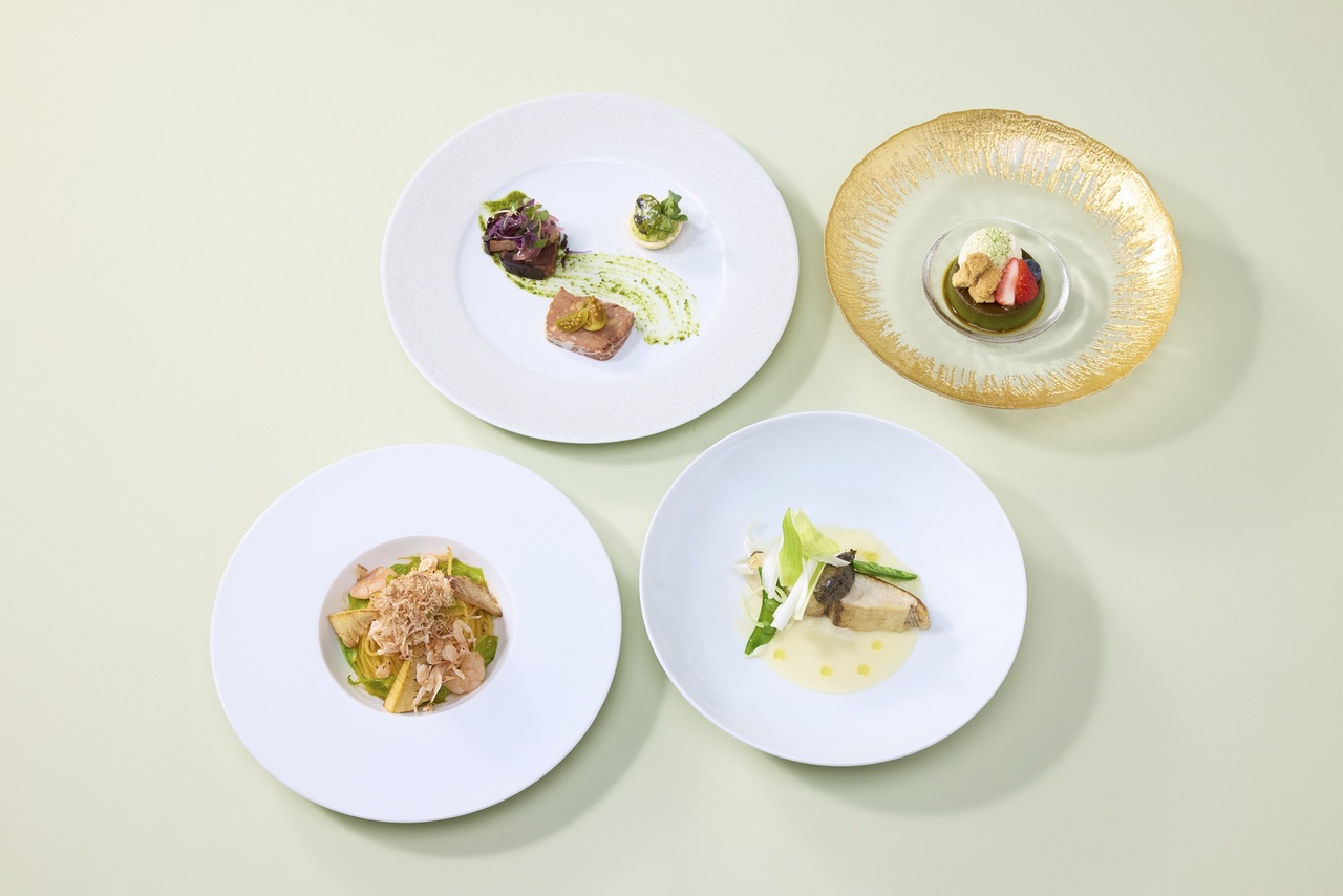 Menu example: [3/1~5/31] Omotenashi Stuzzichino Crab and Turnip mousse with seasonal vegetables Carpaccio Onion Soup Spanish Mackerel with Spring Vegetables Beef Fillet and Mountain Vegetables Rice Marinated Miura vegetables with tamari soy sauce SAKURA Mousse with spring citrus Coffee / Tea ・The menu is an example. ・The contents of the menu may change suddenly depending on the availability of ingredients. Please note in advance. ・Please note that there is a possibility that trace amounts of allergens may be mixed in during the cooking process.