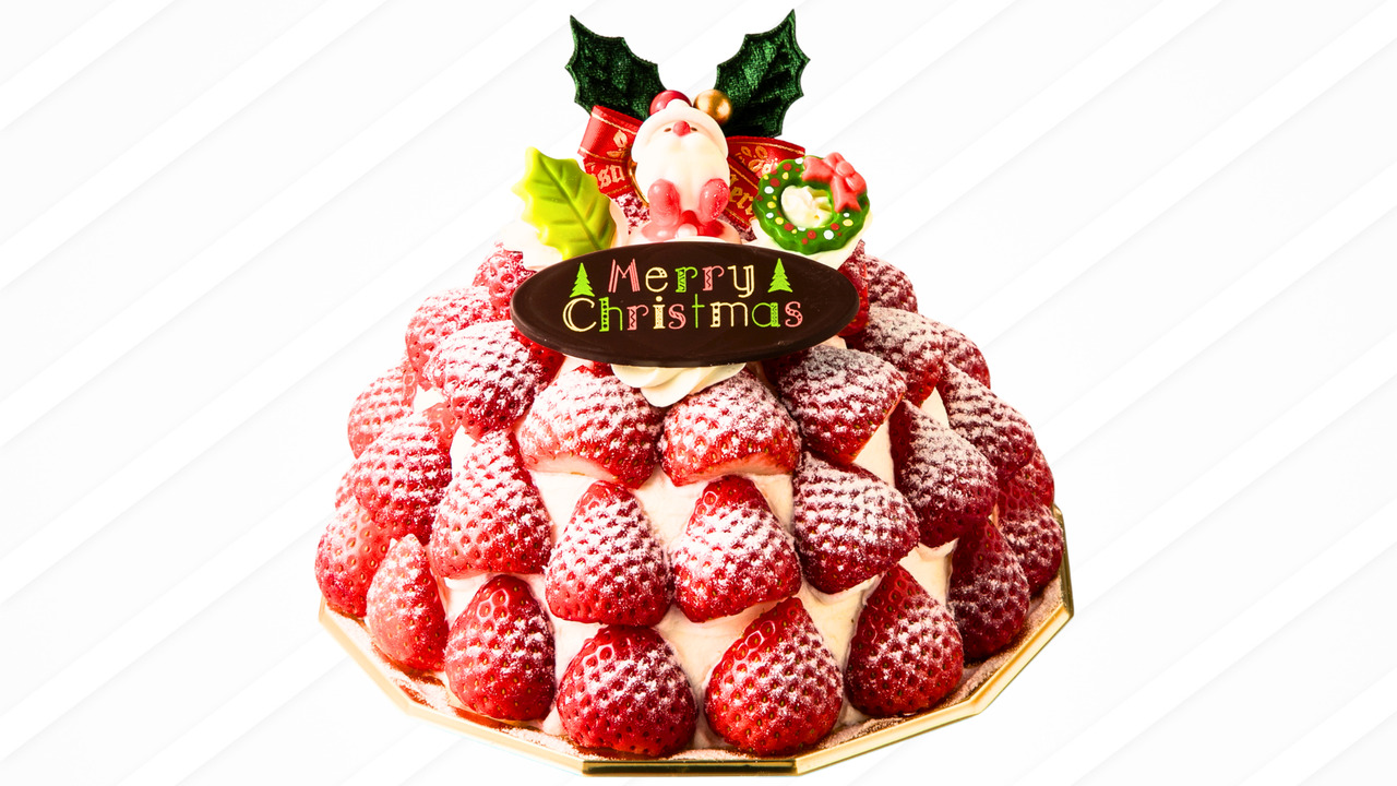 ふわふわスポンジとたっぷりの生クリームをいちごで包み込んだ、まるでいちごの宝石箱のようなドーム型ケーキ。カットすれば中からも大粒いちごが顔を出す、見ても食べても楽しい一台です。
