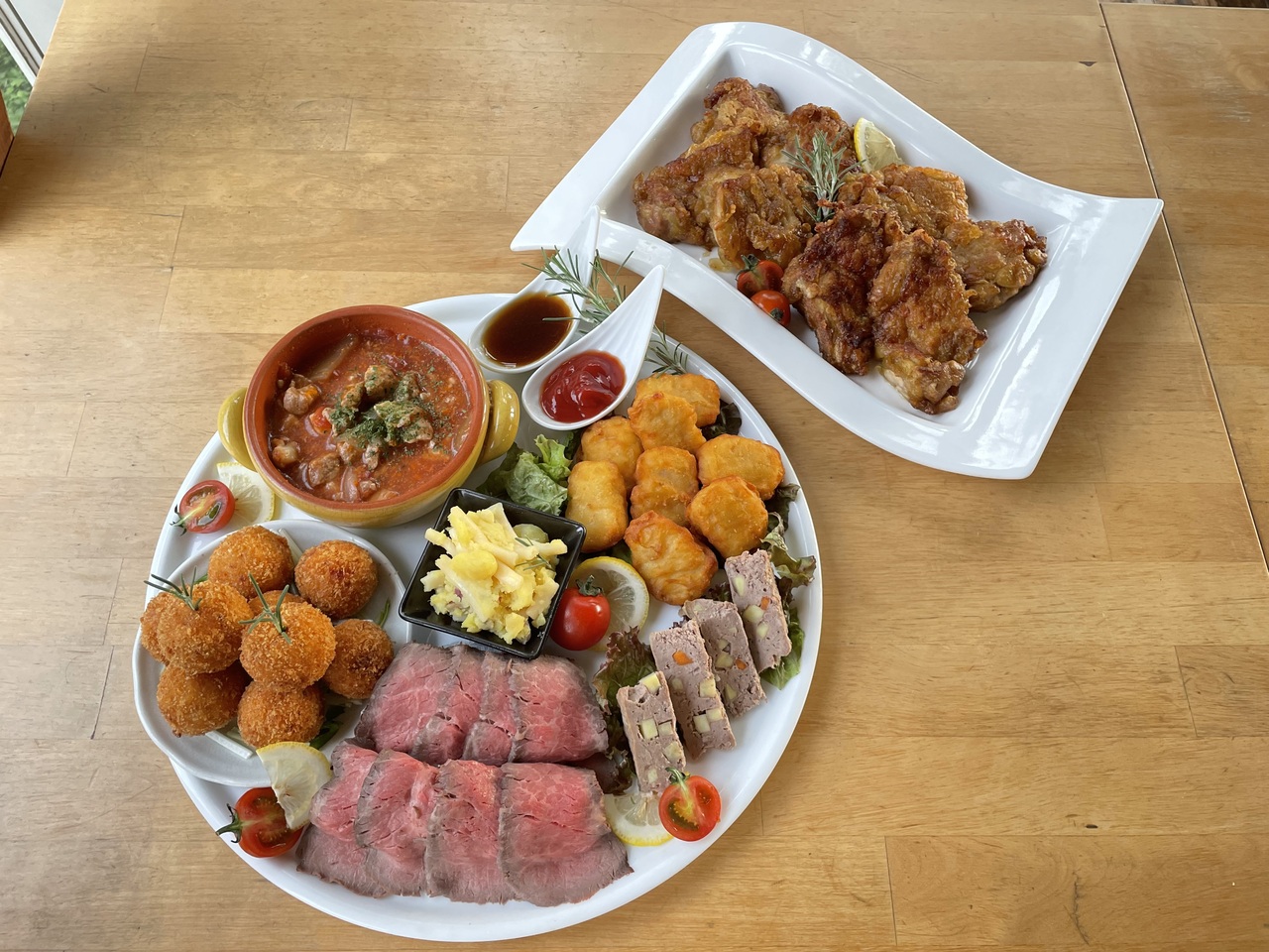 いちご一会特製のオードブルとフライドチキンを組み合わせた、クリスマス限定のお得なセット。パーティ準備が手軽に整う、ボリューム満点で大満足のごちそうです。