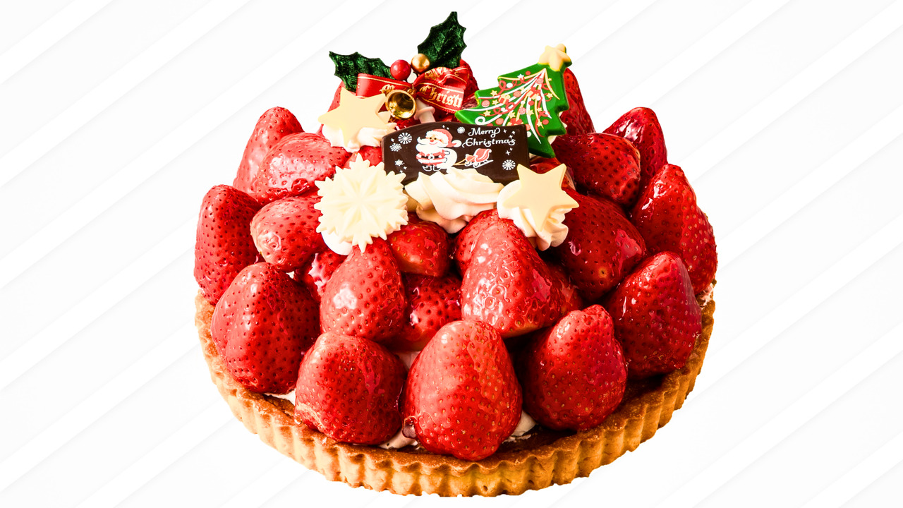大粒で華やかな“スカイベリー”をふんだんにのせた贅沢タルト。サクサクのタルト生地に、甘酸っぱいいちごとクリームのハーモニー。クリスマスの食卓を彩る、特別サイズの豪華な一台です。