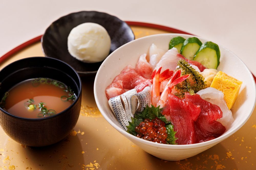 A quick and satisfying "Seafood Bowl Set" (includes miso soup and a bite-sized dessert)