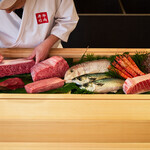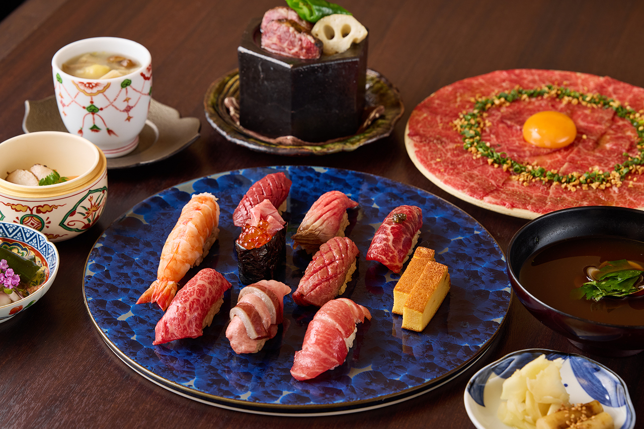 <Private room guaranteed> 10 pieces of assorted beef sushi made with sea urchin and wagyu beef hand rolls, seasonal seafood, and high-quality wagyu beef.