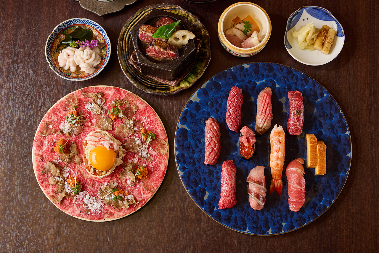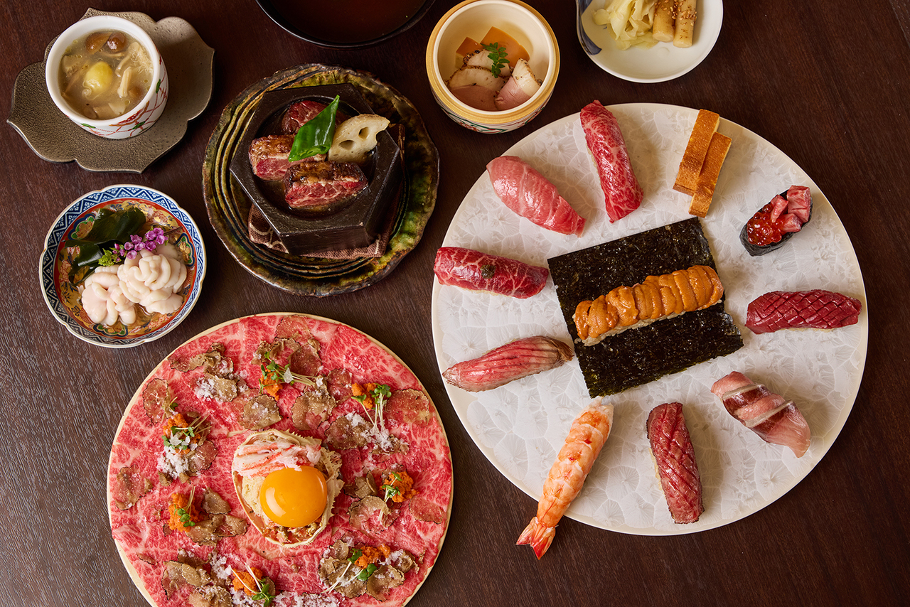 <Counter seats> Enjoy our specialty sea urchin hotdog and 8 pieces of beef sushi recommended for the day at the counter! In addition to sushi, this popular lunch course comes with 2 dishes made with the highest quality Wagyu beef and seasonal ingredients.