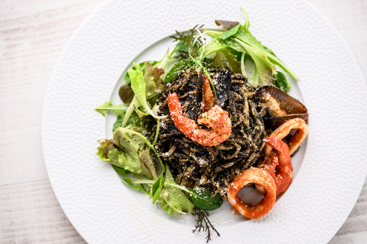 An original pasta made with Okinawa's soul food, Okinawa soba noodles.