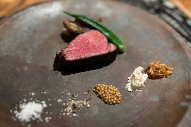 An elegant space perfect for special occasions, where you can savor Kobe beef and seasonal charcoal-grilled dishes paired with fine wines. Featuring around 450 bottles, mainly from Burgundy, our authentic wine bar offers a warm, wood-accented interior ideal for anniversaries, business dinners, or solo visits. Wine-only guests are also warmly welcomed.