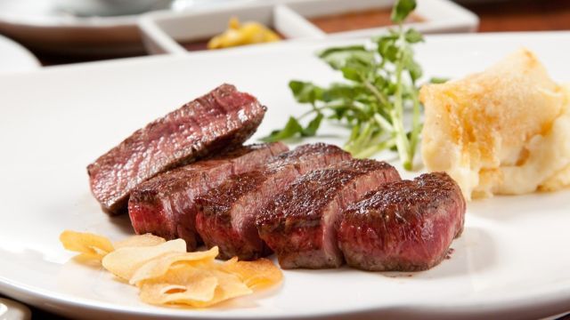 黒毛和牛のステーキ(フィレ80g 又は サーロイン100g)/焼野菜/御飯・味噌汁・香の物/デザート・コーヒー