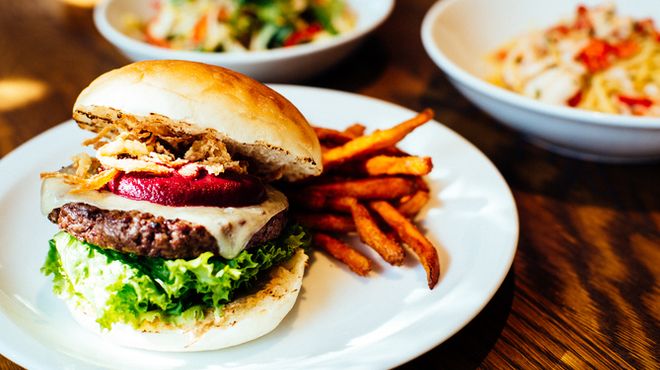 - MAIN DISH - ・This week's main dish ・Herb marinated grilled swordfish steak with cauliflower, Brussels sprouts and trapanese pesto ・Spiced panko chicken cutlet with Maribo cheese, mashed potatoes and wild arugula ・Country captain curried roast chicken leg with green beans and butter rice ・Double cheeseburger with Tillamook cheddar and and colby Jack and smoked bacon, fries ・Grilled plant base cheddar cheeseburger on a milk buns ・Grilled beef ribeye steak with red wine sauce and green veggies(+1,050)