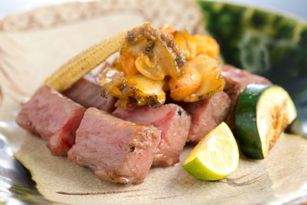 "Benkei" is an authentic Japanese restaurant on the 7th floor of the Kumamoto Nikko Hotel. Private rooms available, all with views of the Japanese garden and for some, Kumamoto castle. Our full Japanese course uses seasonal ingredients across all sushi and meat dishes. Our specialties include 'Basashi' (raw horse) and Amakusa-caught fish to accompany our delicious Kuma Shochu.