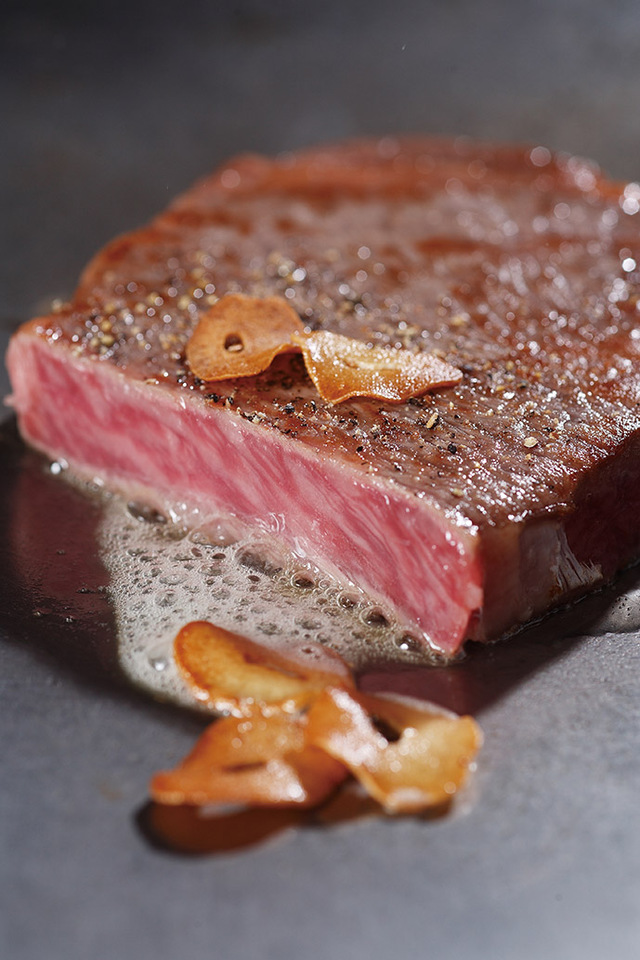 Kuroge Wagyu filet steak (120g) or Kuroge Wagyu sirloin steak (150g), served with grilled vegetables