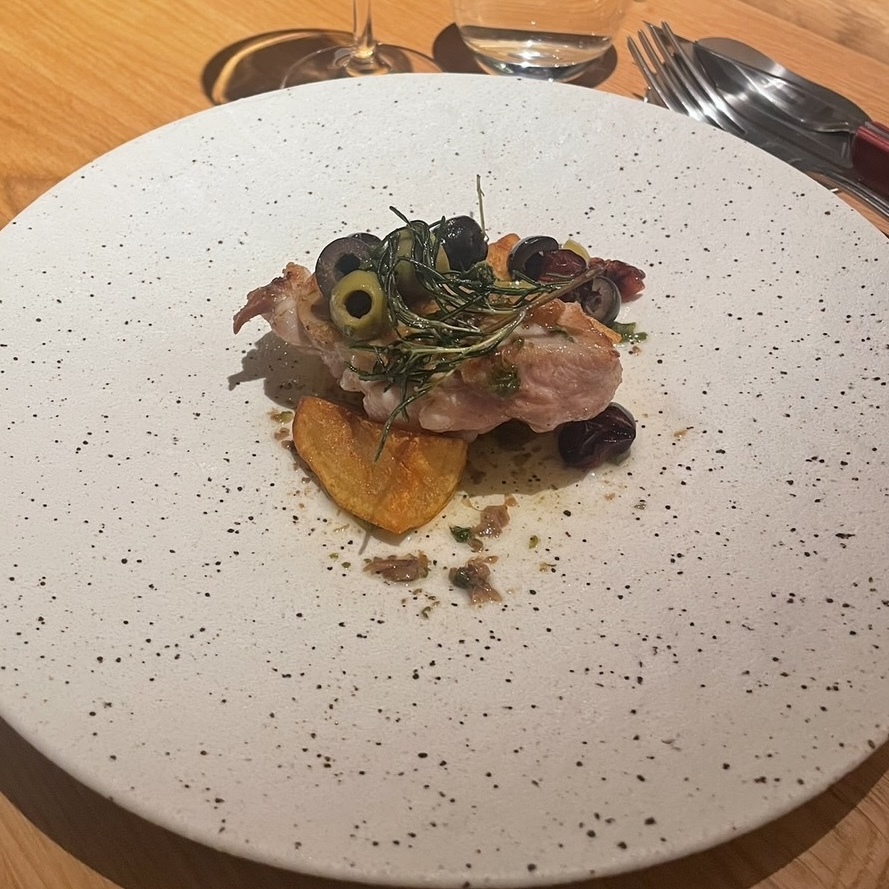 - Grilled Tilefish Scales ~ Yellow Yuzu and Tofu Skin Sauce ~