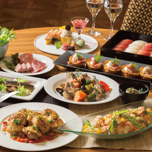 【1週間前までのご予約で4名様~500円割引】【大人・シニアの方】旬の食材を使った彩り豊かな約50種類のお料理と、約40種類以上の120分フリードリンクが付いて、