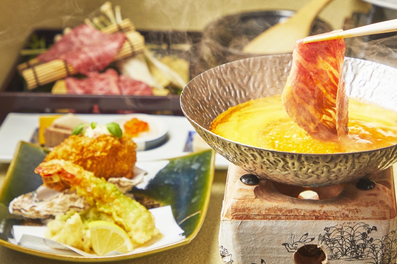 Pertanyaan untuk [The "Kiwami" course features luxurious spring ingredients and a choice of clay pot rice] "Small pot of golden broth shabu-shabu with cherry snapper," "Seared toro taku and wagyu beef sushi," "Spring salmon cutlet" and a choice of clay pot rice "Spring flavors of raw bacon and new potatoes in a clay pot or salmon roe and salmon roe rice"