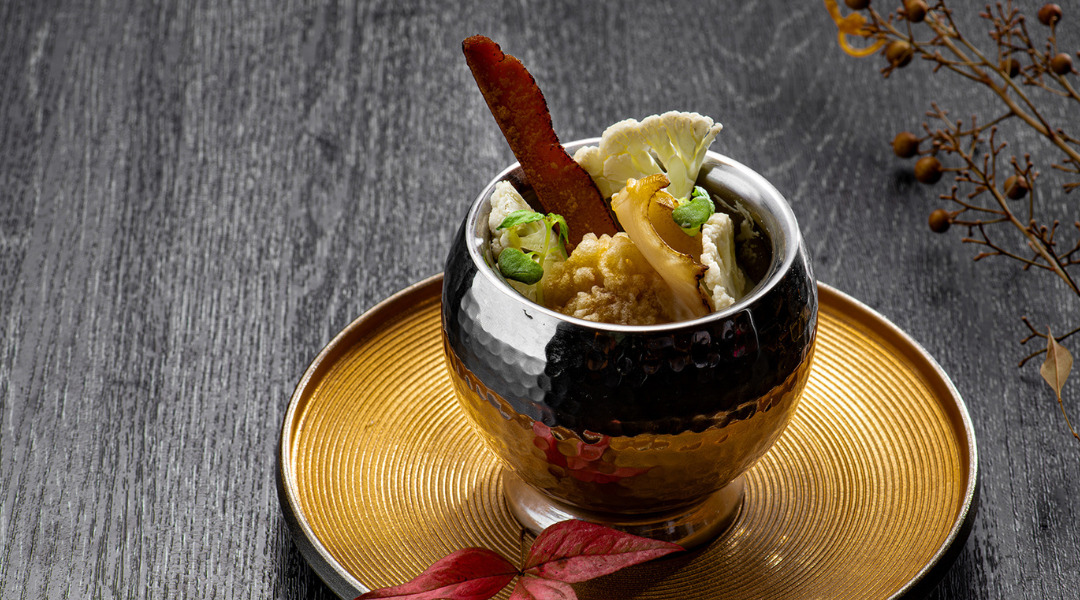 "A luxurious course featuring fresh live abalone and premium red king crab, prepared with seasonal ingredients."
