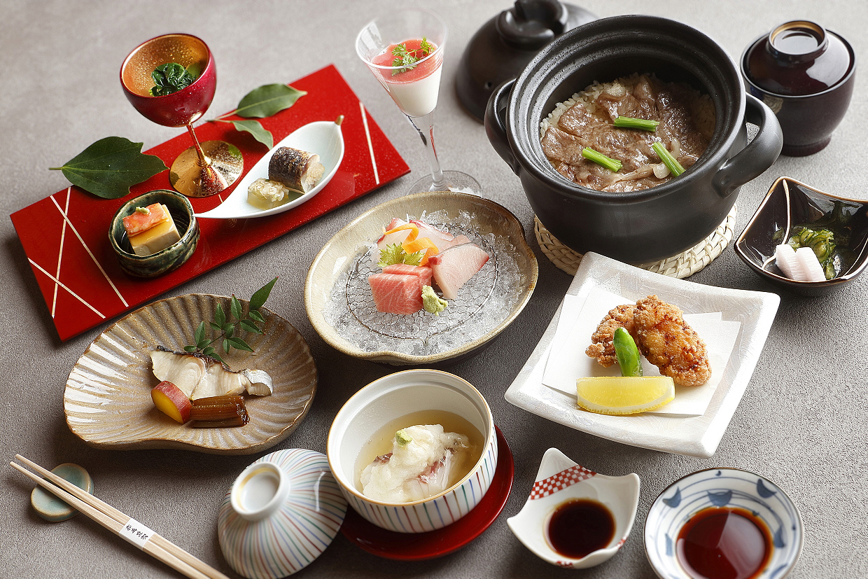 松茸と福岡県の食材が盛りだくさん、松茸土瓶蒸しや博多和牛など