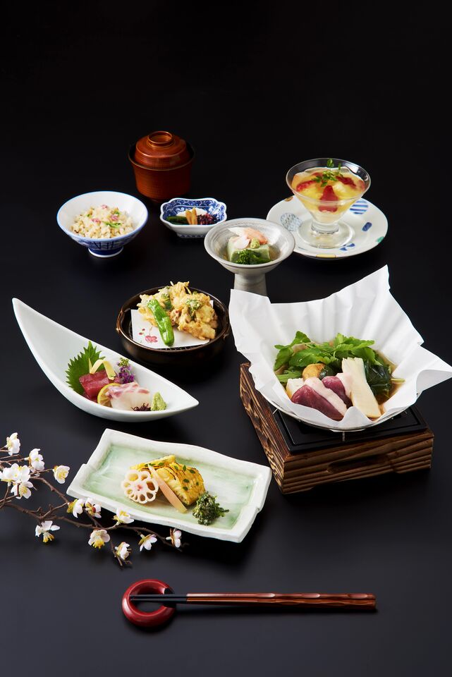 一品ごとに歴代居城をコンセプトとして、彼が愛したとされる旬の食材をふんだんに使用し、当時の賑わいを彷彿とさせる贅を尽くした品々を揃えました。