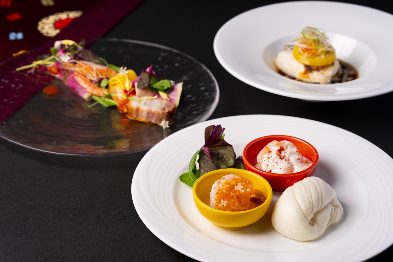 サラダ、点心2種、メイン2品、ご飯&スープ または お粥、デザート