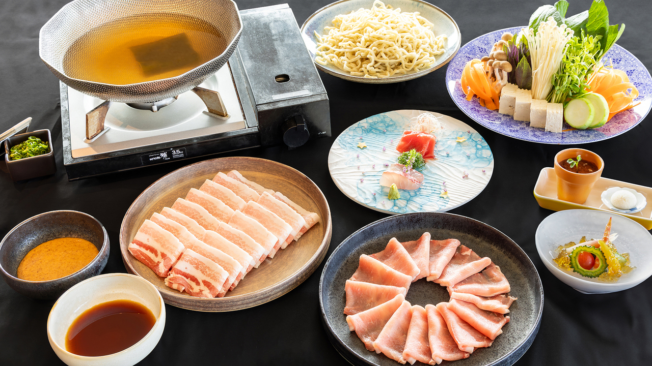Shabu-shabu course made with Okinawan brand pork and plenty of vegetables from the north