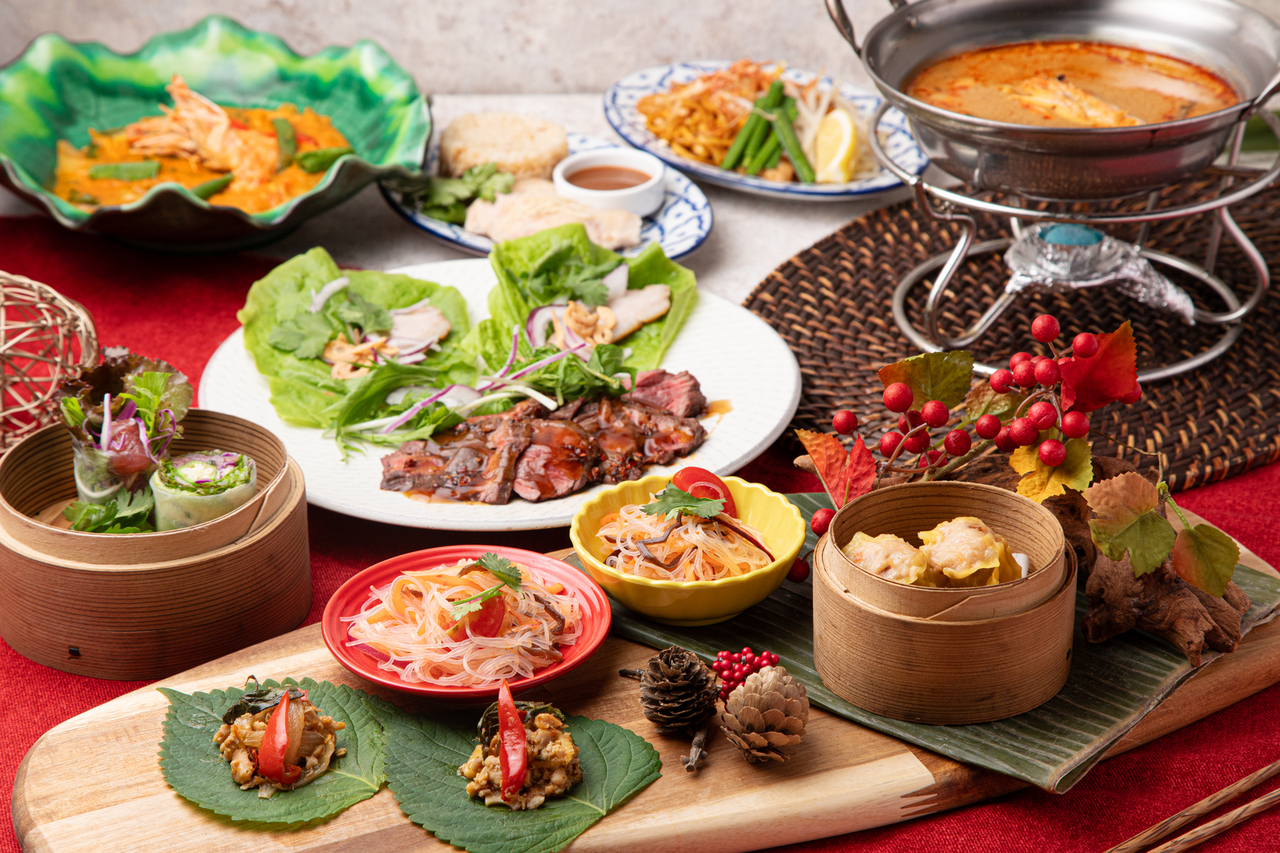 <Course Contents> *Course contents may vary depending on the availability of seasonal ingredients and what is available. ◇Appetizer◇Assortment of 5 ethnic appetizers・Vermicelli salad ~Yam Woon Sen~ ・Perilla gapao wrap・Fried crab spring rolls・Lemongrass-scented gai tot ~Thai-style fried chicken~ ・Green curry potato salad◇Dim sum◇ ・Thai street food shumai ~Khanom Jeep~ ◇Hot dishes◇ ・Stir-fried white fish with black pepper◇Meat dishes◇ ・Grilled beef skirt steak◇Specialty dishes◇ ・Specialty! Chewy fresh noodles pad thai◇Dessert◇ ・Melting almond tofu