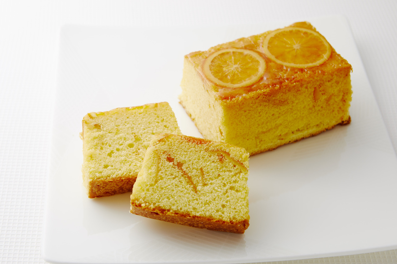 オレンジピールを入れて焼き上げた、オレンジ風味のケーキ