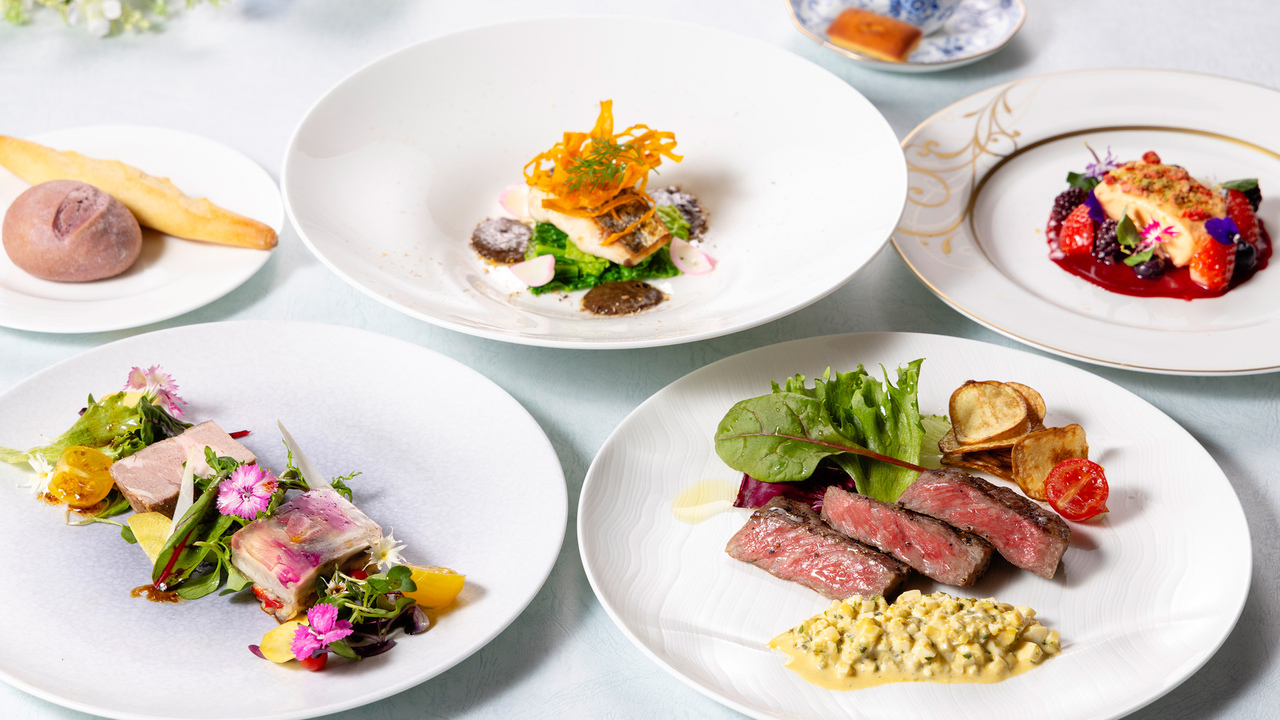 Chef’s recommended course featuring an elegant hors d’oeuvre stand, Kuroge Wagyu beef, a fish course and dessert.