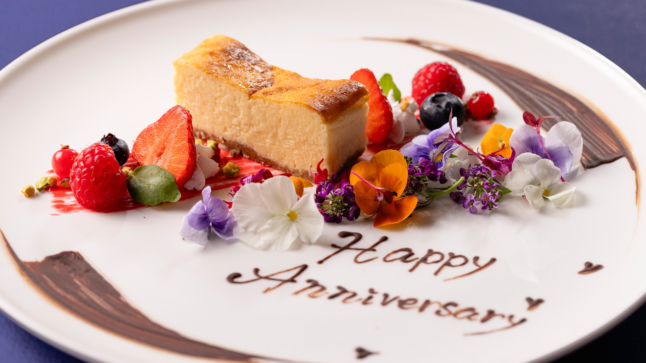 お好きなメッセージをプレートにお入れする1名様分のアニバーサリー用デザートプレートです。カジュアルなサプライズやお祝いにぴったりの一皿です。