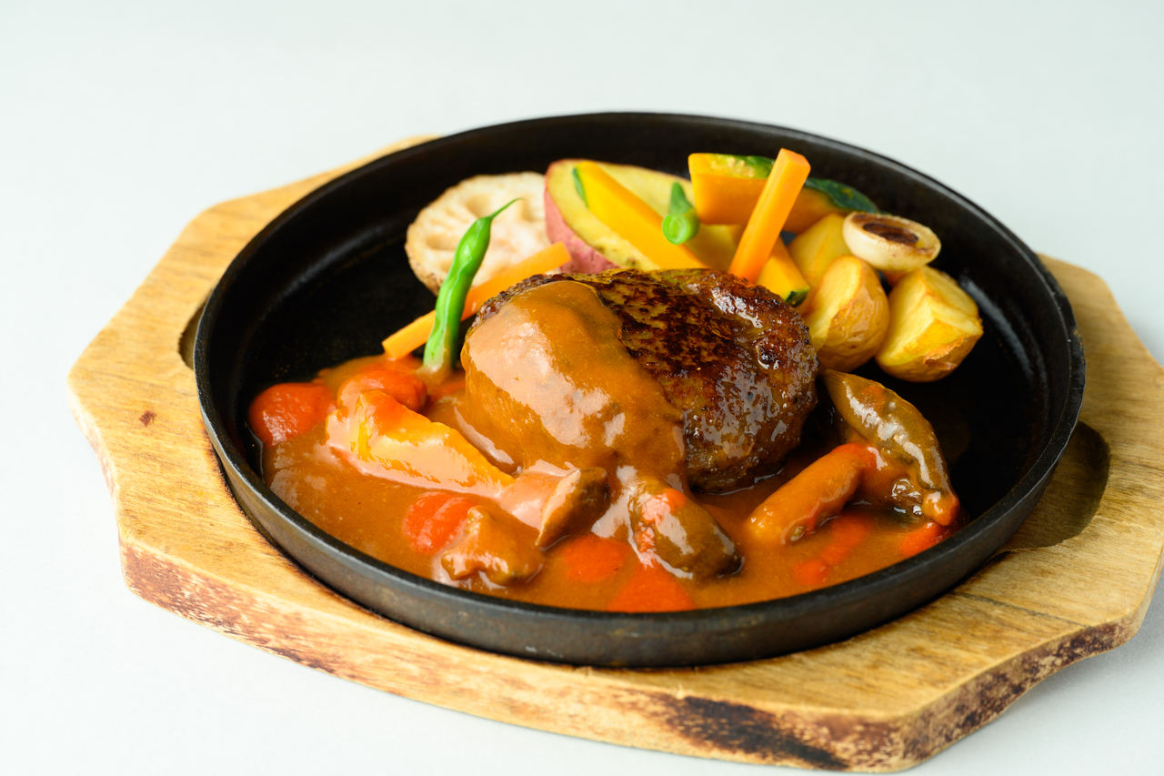 ⑤氷見牛入りハンバーグステーキの鉄板焼き いろいろ茸のデミグラスソース ライス付き