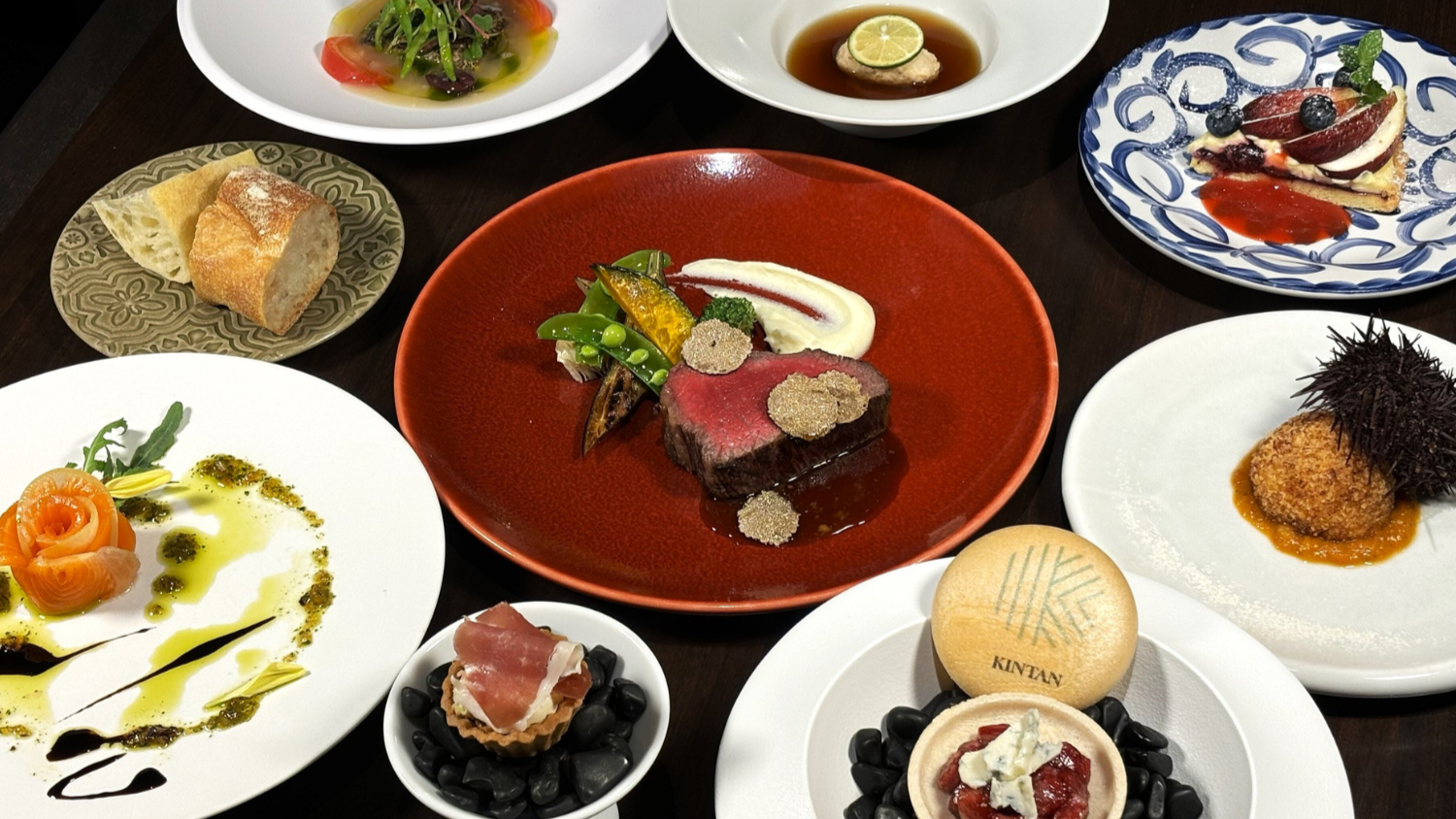This new-style steak restaurant showcases Japan's world-renowned Wagyu, carefully selected by expert meat artisans. Enjoy a variety of premium cuts served in a “steak style,” including 30-day aged beef tongue—also a favorite at Yakiniku KINTAN—lean Wagyu, misuji, A5-grade Sendai beef, filet, sirloin, and more.