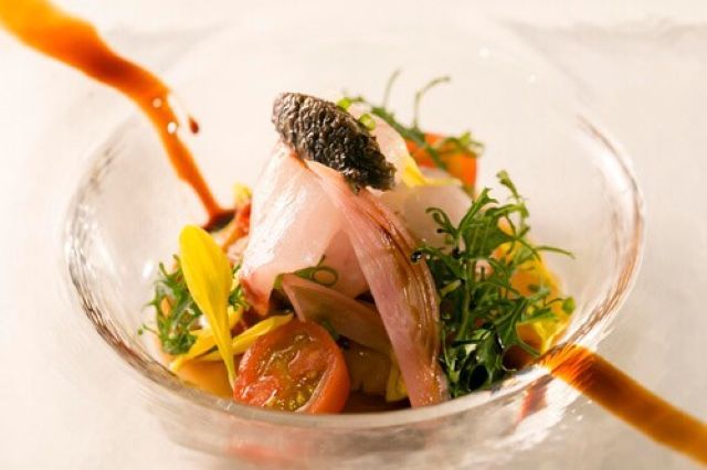 -Amuse-bouche -Appetizer 1 -Appetizer 2 -Fish dish (Choose 1 from 2 dishes) -Granite (Palate cleanser) -Meat dish (Choose 1 from 2 dishes. Can be upgraded to "Pan-fried beef fillet and foie gras" for +2000 yen *Reservation required) -Dessert -Petit fours and coffee