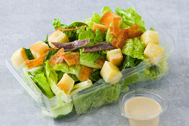 Romaine lettuce, Caesar dressing, Parmesan, crispy bacon, anchovies, croutons