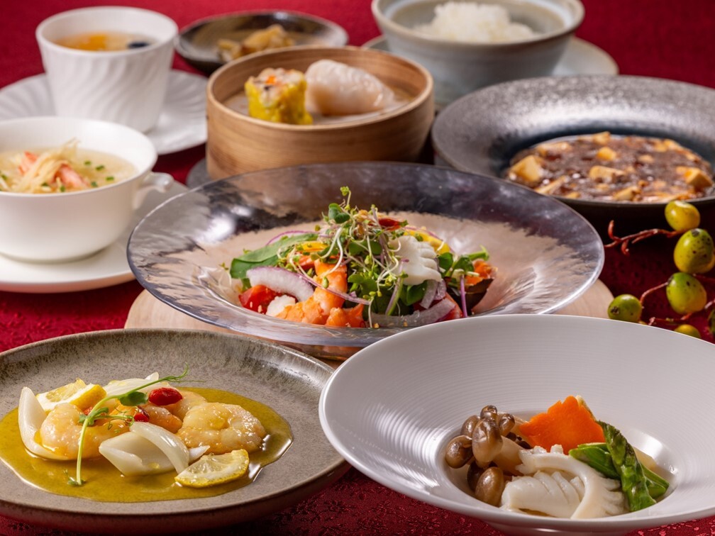 前菜盛り合わせ、ふかひれスープ、デザート2種が付いたお得なプランです。