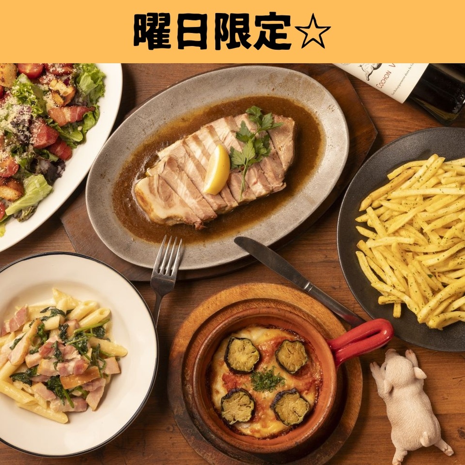 本格豚肉料理が自慢の「ベルサイユの豚 池袋」から、充実のディナーコースが登場。ビールやハイボールなど2時間飲み放題付きだから、ほろ酔い気分でトークも弾むはず。前菜からメイン、リゾットまでバランスよく楽しめる、当店自慢のコース。 合鴨パストラミやポークリエット、キャロットラぺの前菜3種盛りから始まり、 定番のクラシックシーザーサラダに、あつあつの温菜2品をご用意。 メインには、48時間じっくり熟成させた豚肩ロースのステーキを、 最後には濃厚チーズリゾットを。 気軽に楽しめるのにしっかり満足できる、よくばりな内容です。