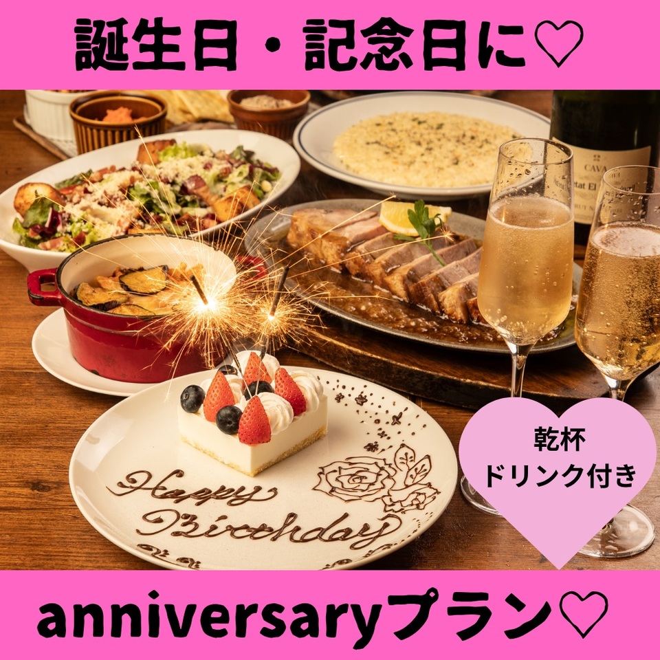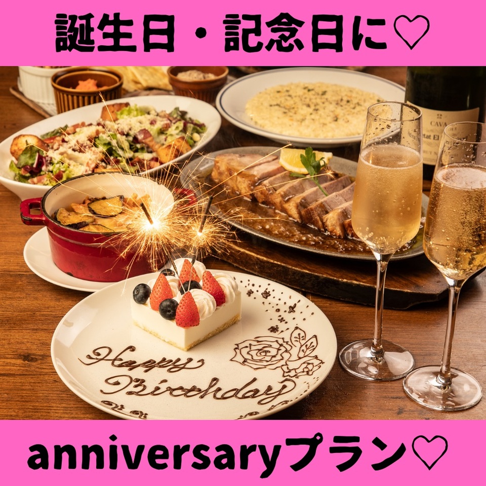 【anniversaryプラン】乾杯スパークリング付 大切な日に送るanniversaryコース全11品 『お料理のみ』3,500円