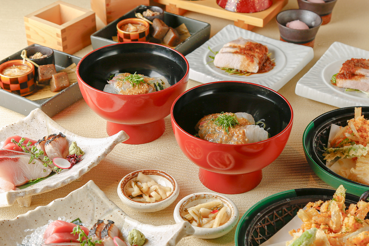 [Kaiseki-keuken uit de lente] Populaire gerechten zijn onder meer "Sakura zeebrasemrijstkom met sesammisosaus" en op lage temperatuur gegaarde dikke plakken varkensbiefstuk. Premium-abonnement met 120 minuten onbeperkt drinken