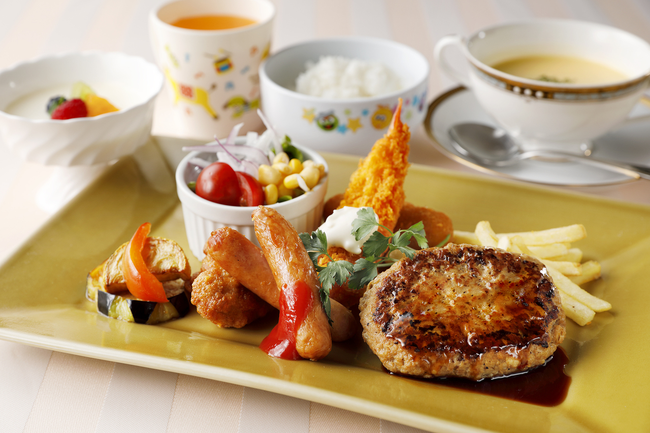 ハンバーグやパスタなど、お子様に人気のメニューを盛り込んだプレートです。