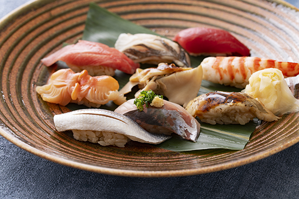 料理長おまかせのにぎり全12貫のコースを職人との会話を楽しみながらご堪能ください。