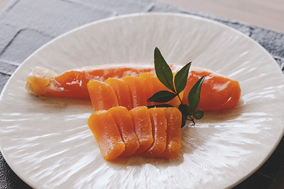 自家製のブレンドした味噌に漬けこむ独自の製法で仕込まれたからすみは