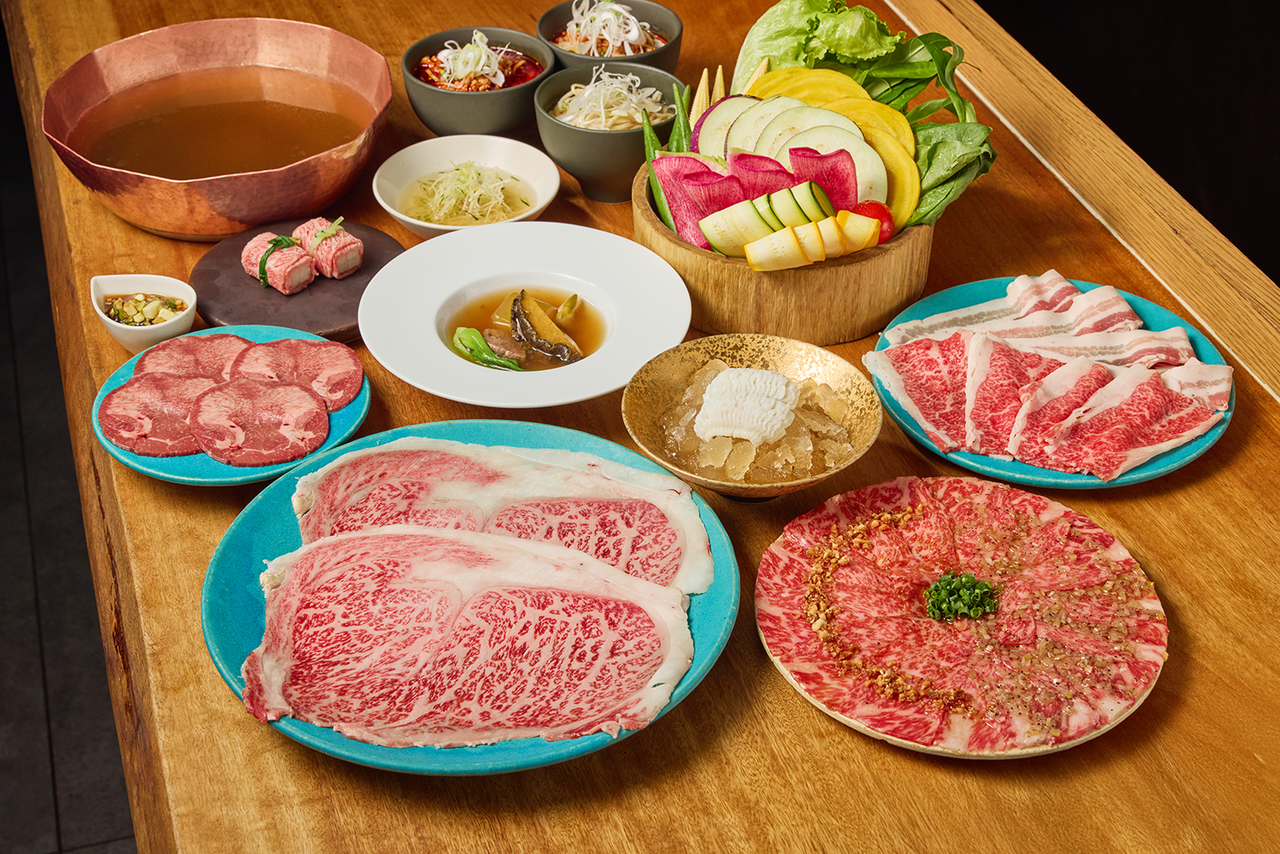 A variety lunch set with a choice of soup stock. The meat is an assortment of five popular varieties, including beef tongue, Japanese black beef shoulder loin, and Iwanaka pork from Iwate Prefecture. You can have as many refills as you like of the vegetable platter. Take this opportunity to try our most popular lunch plan.