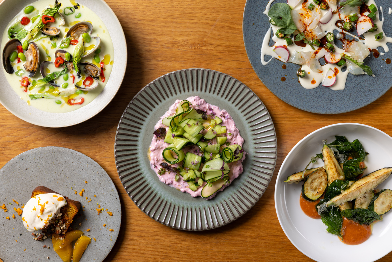 Our tables overlook a garden that shifts with the season — just like our farm-to-table menu.