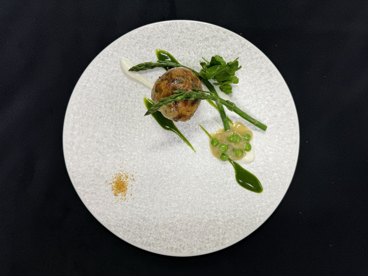 活〆平目にシャプリュールをつけてクラリフェバターで焼き上げ オマールブルーのラビオリを添えて