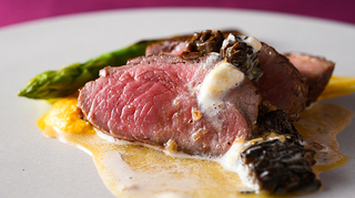 特選牛フィレ肉の瞬間スモークグリル トリュフとマディラ酒のソース ポルチーニのクリーム