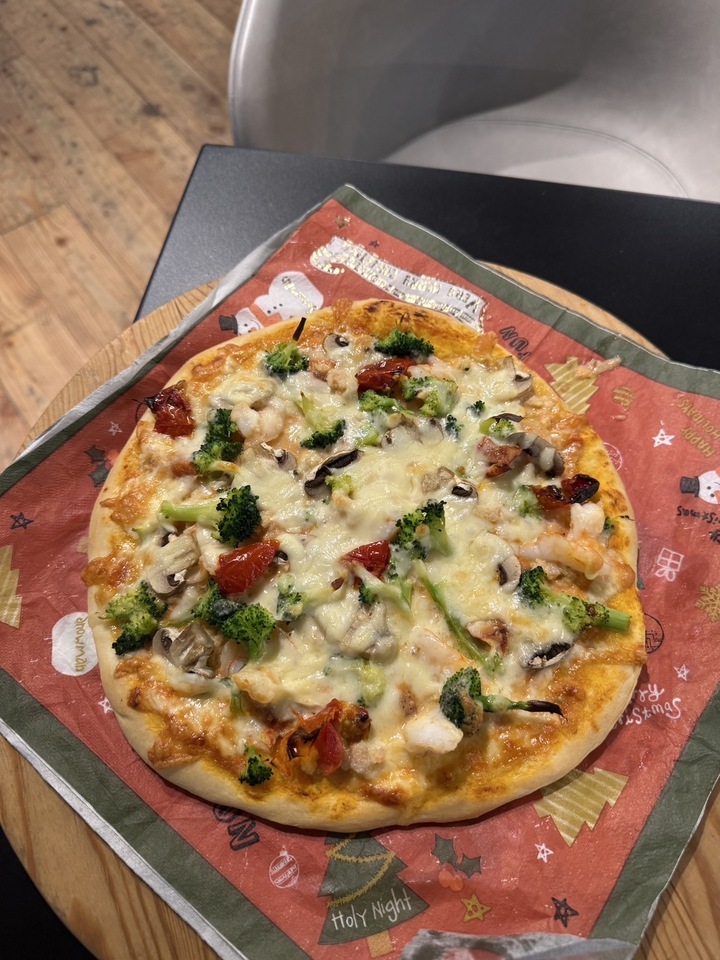 海老、野菜、自家製のトマトソースをいれてしっとりと焼き上げました。